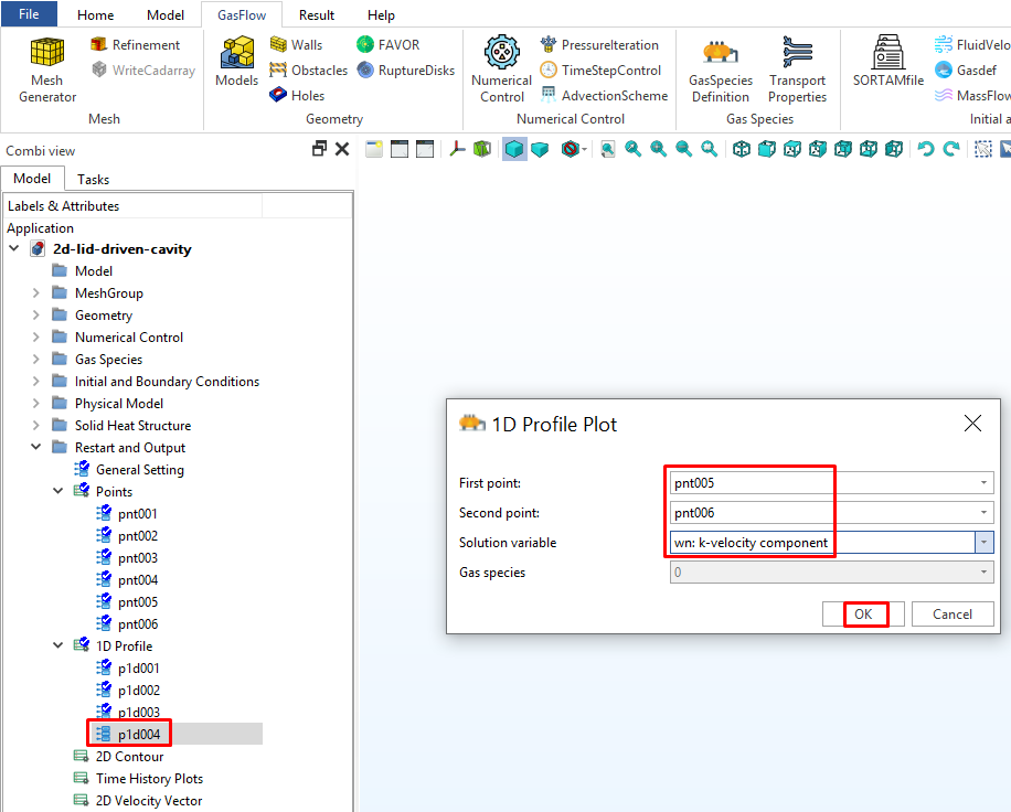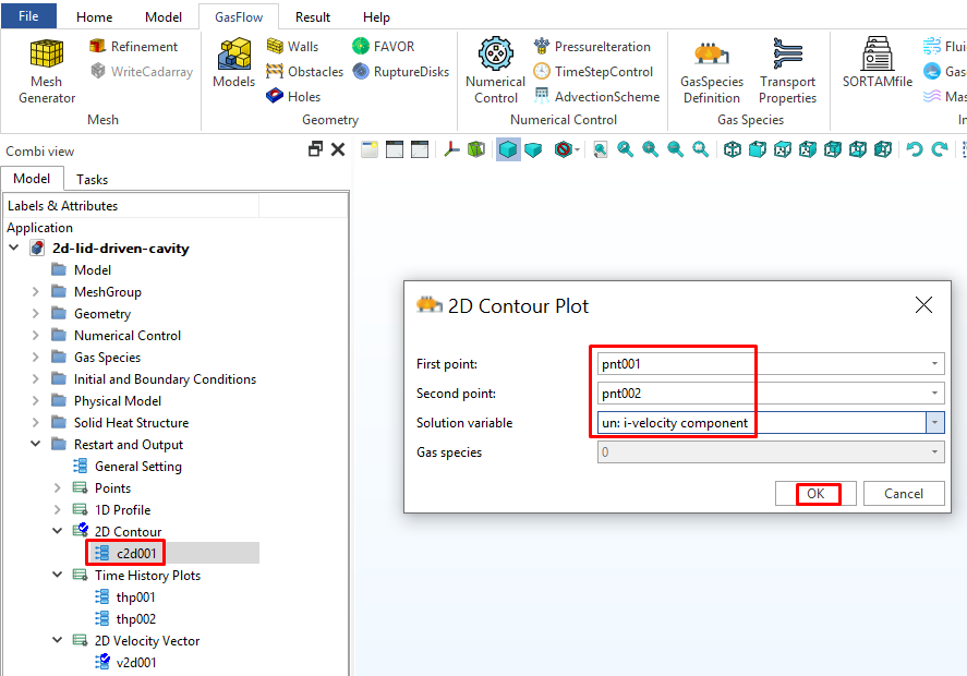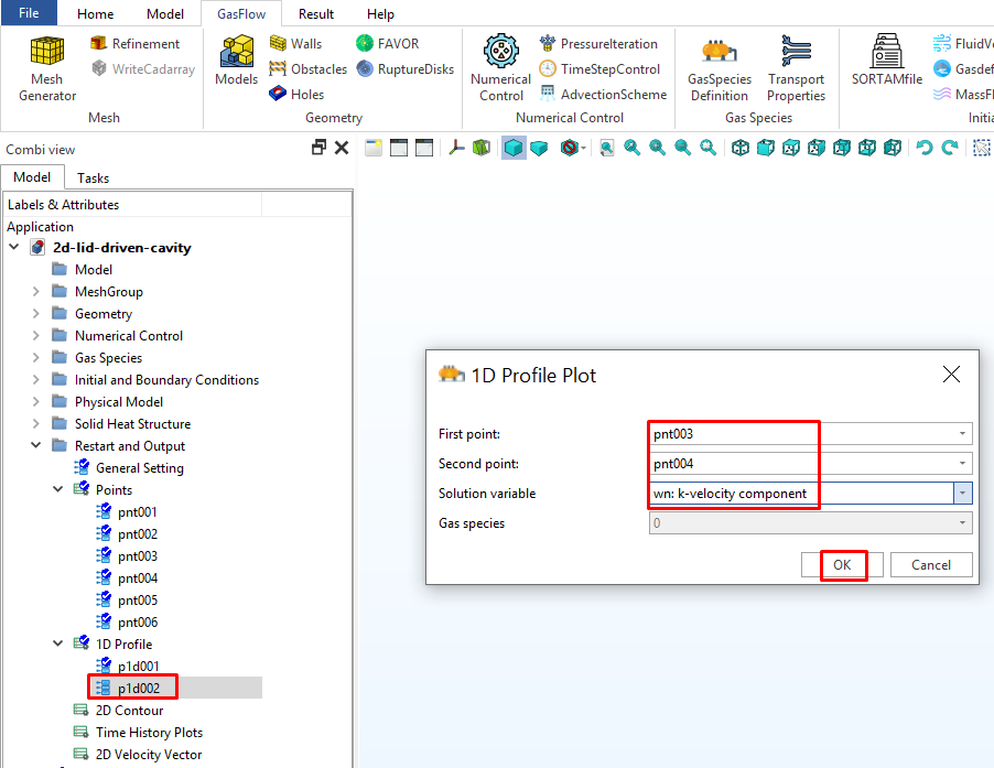 7.2 Activate the special velocity boundary condition developed for the 2-D Lid-driven cavity problem by inputting "iliddc" in the "Custom Parameter". It is especially useful for the input parameters that is unavailable in GASVIEW.